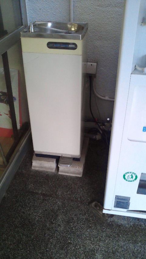出入口付近にあった冷水器。懐かしいなあ。