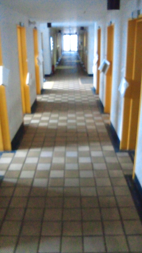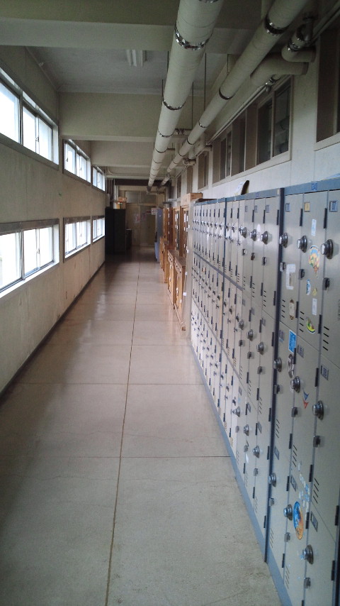 1号館の廊下。未だに木製の戸棚が使われているとは思いませんでした。