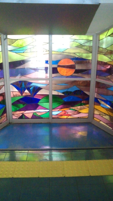 2階にあるステンドグラス。私の代の卒業アルバムは、これを背景に校歌の歌詞が載っていたような気がします。