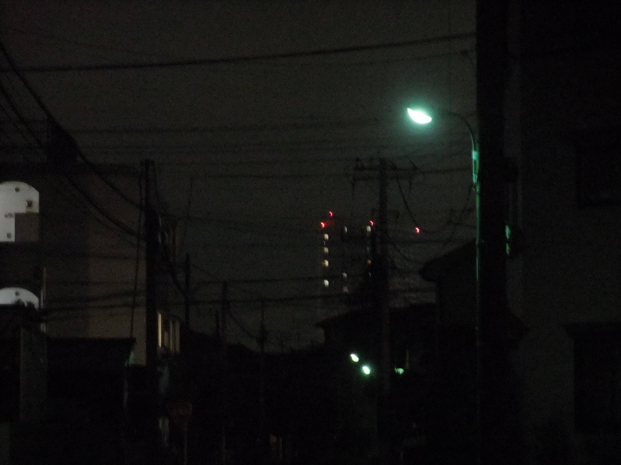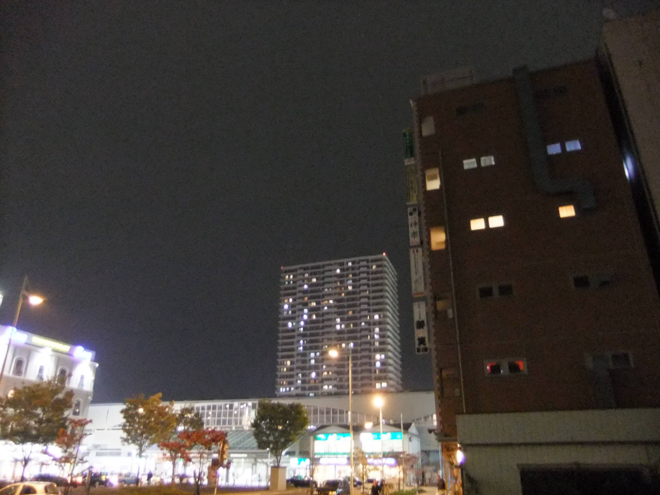 夜で写りが良くないですが、上の高層マンションを、北越谷2丁目から撮ってみました。