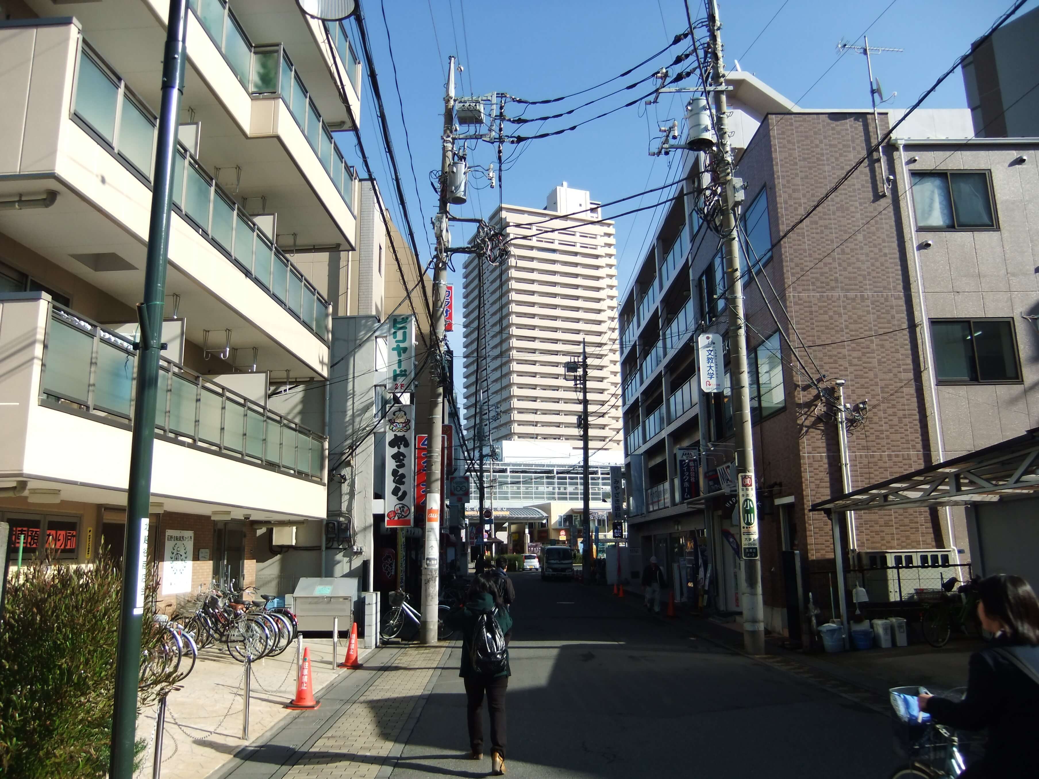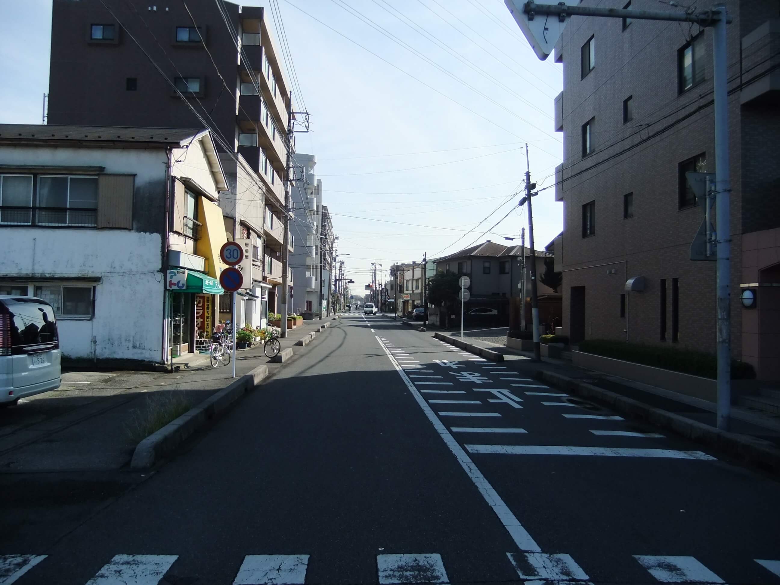 直進すると、北越谷郵便局や「仙石湯」がある通りです。