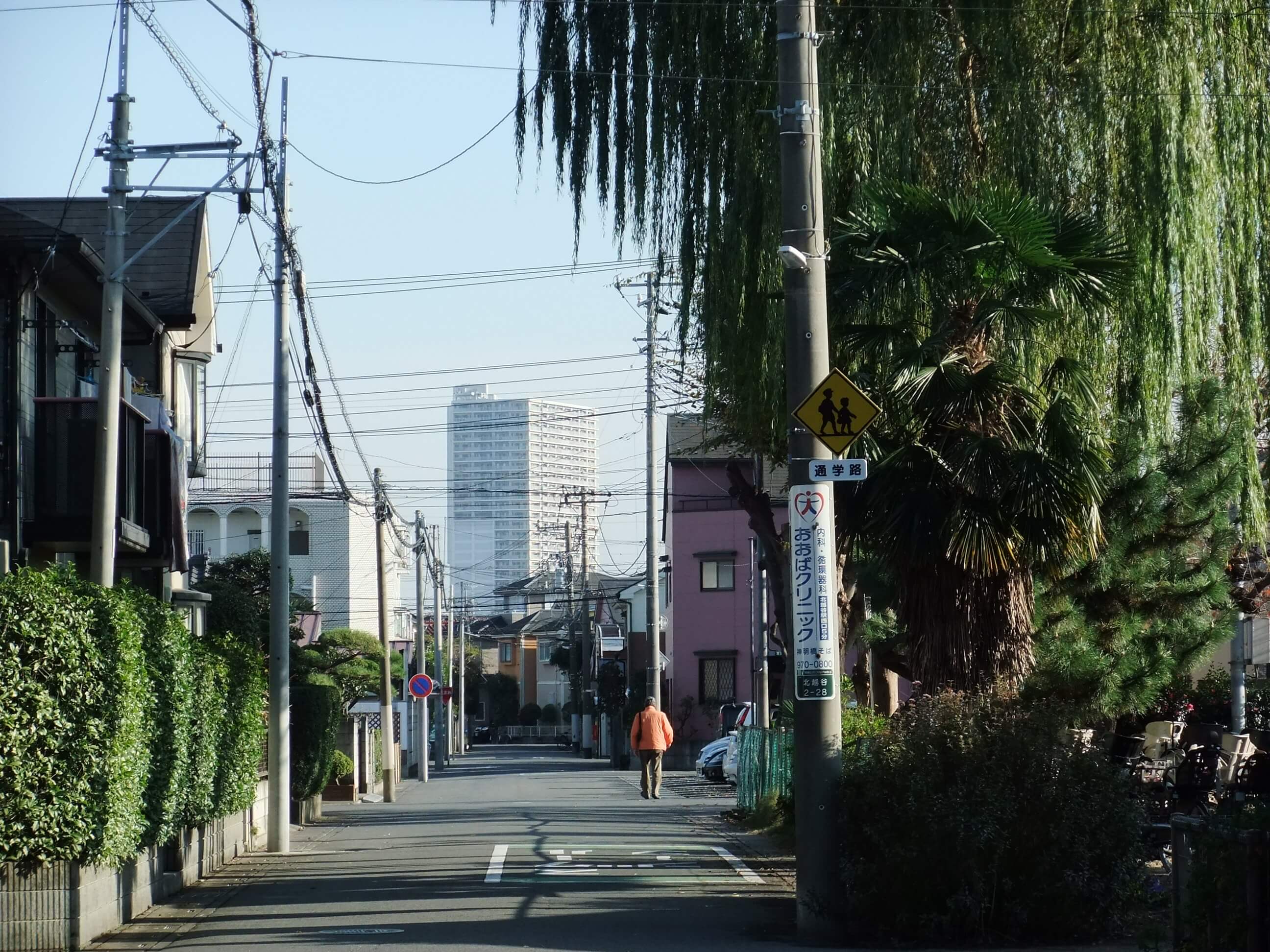 北越谷第2公園の脇から、越谷の高層マンションが大きく見えます。
