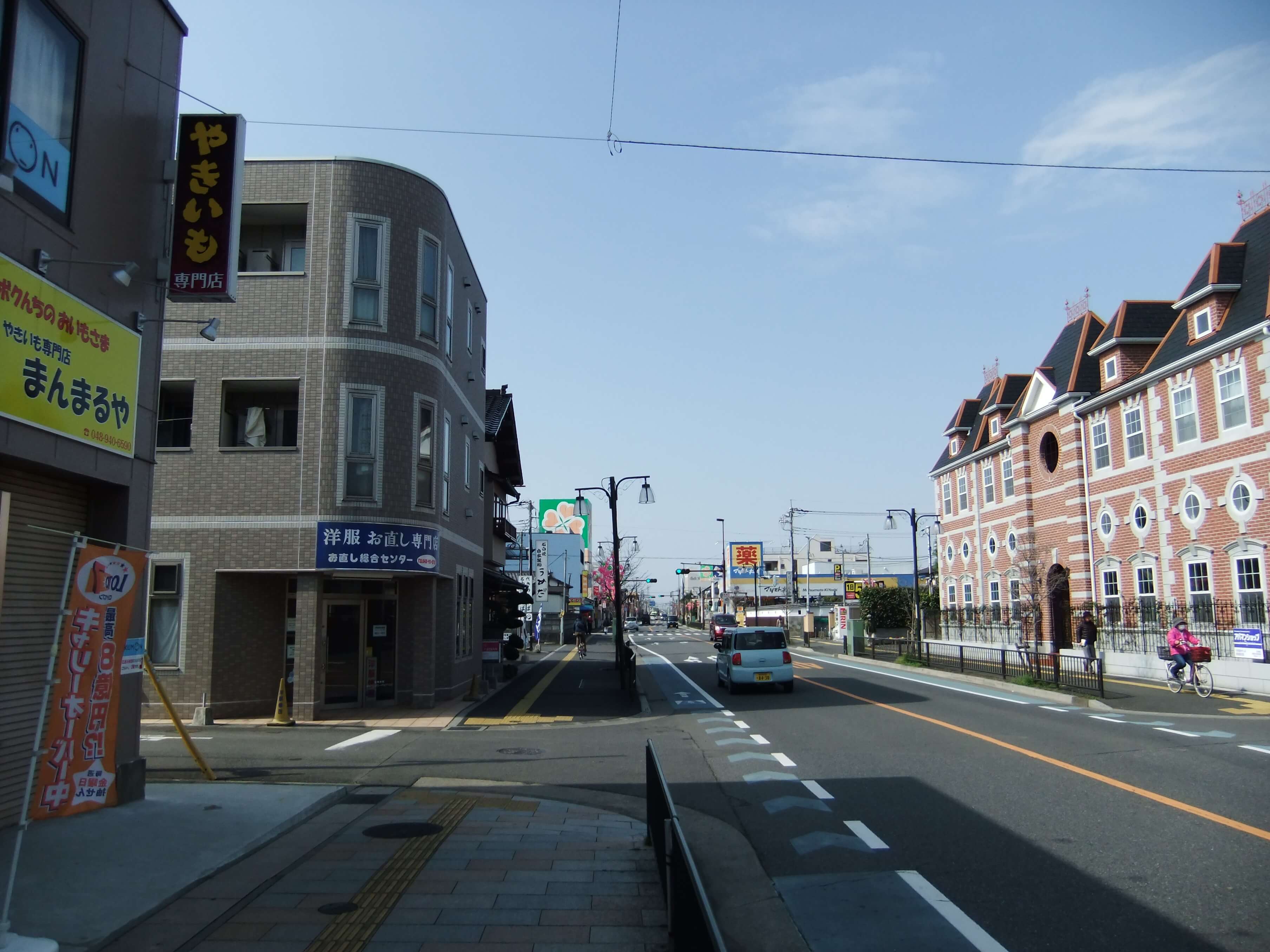 ロータリーを過ぎて、これから駅前通りに出ます。