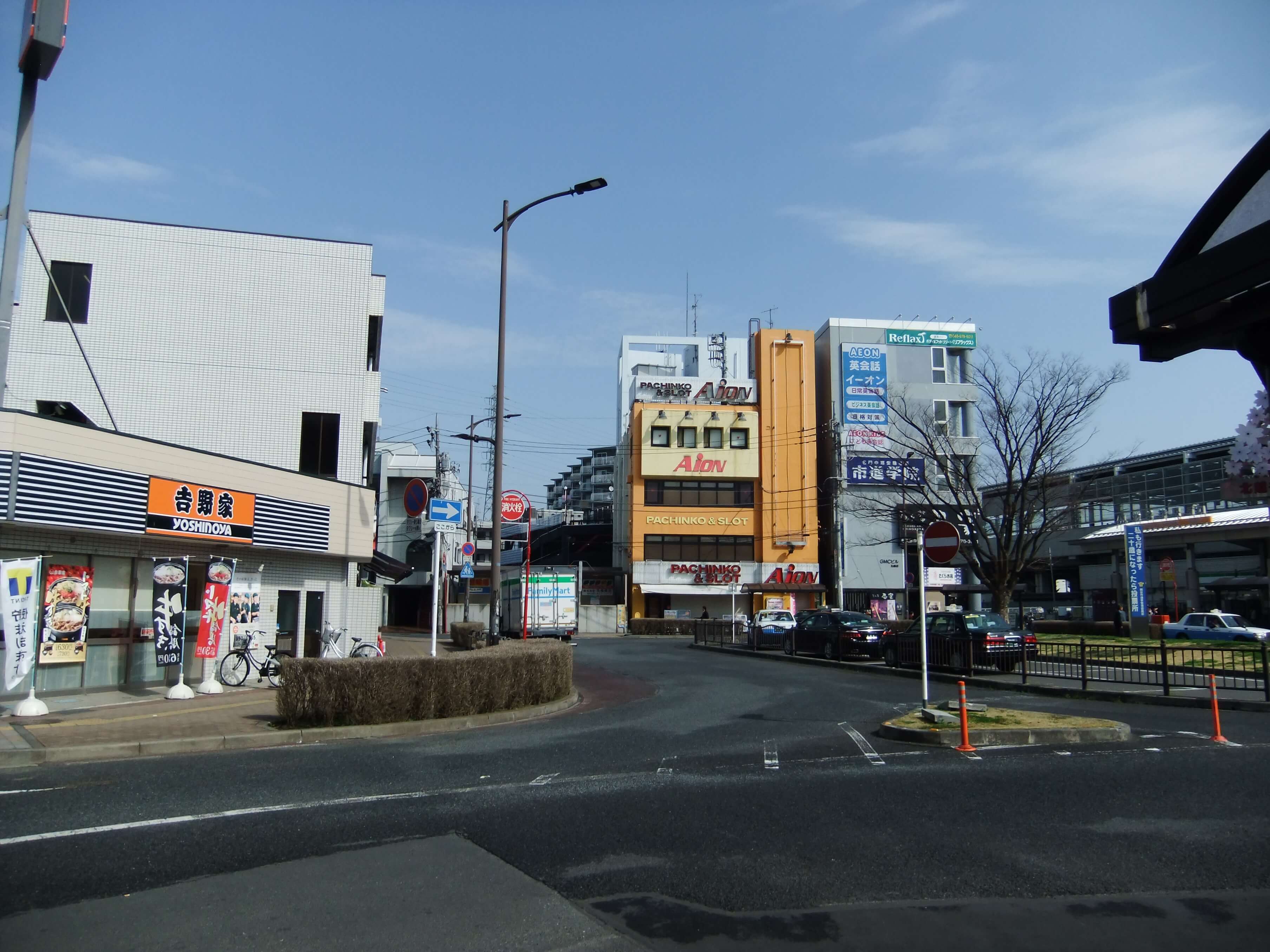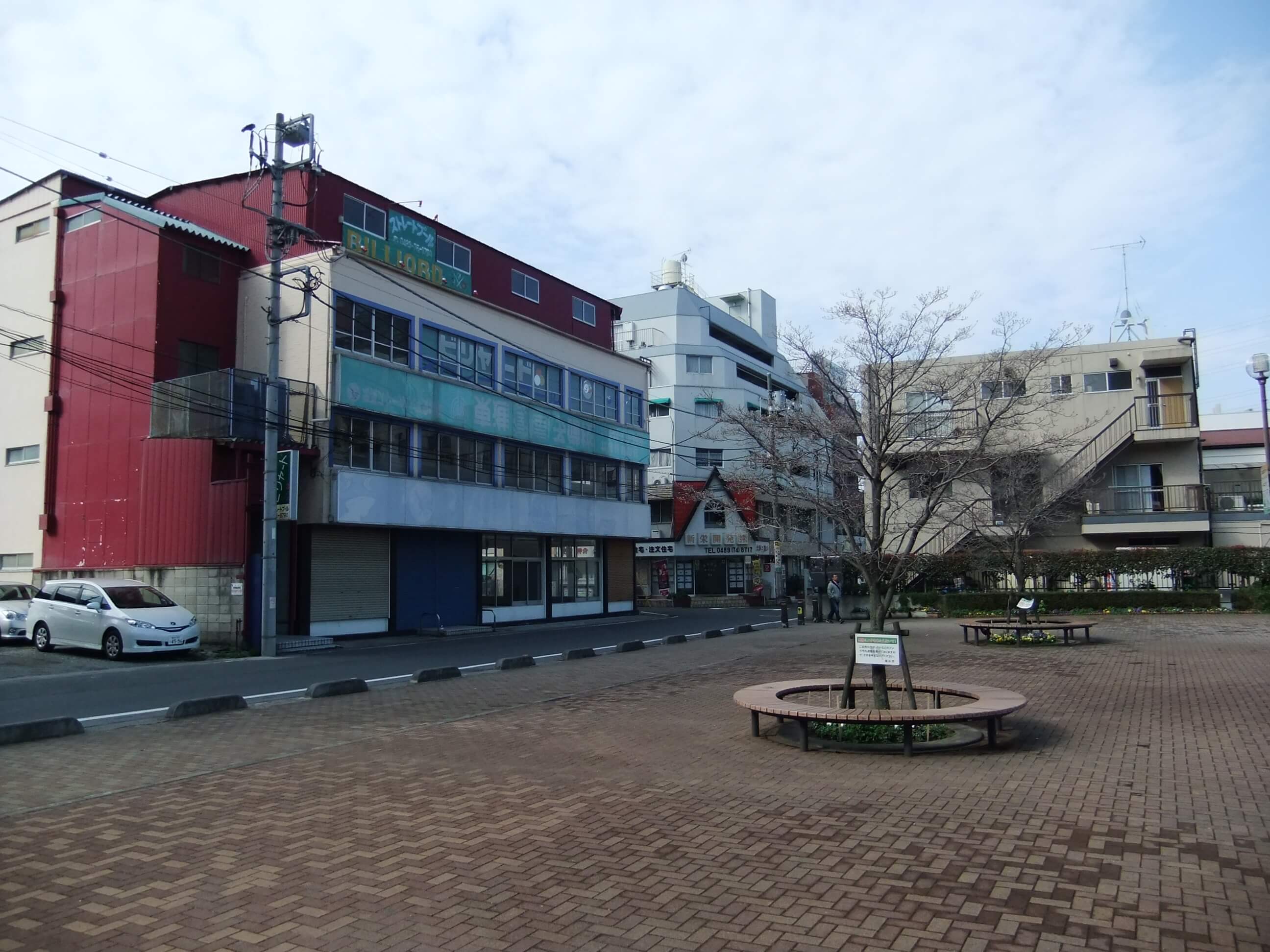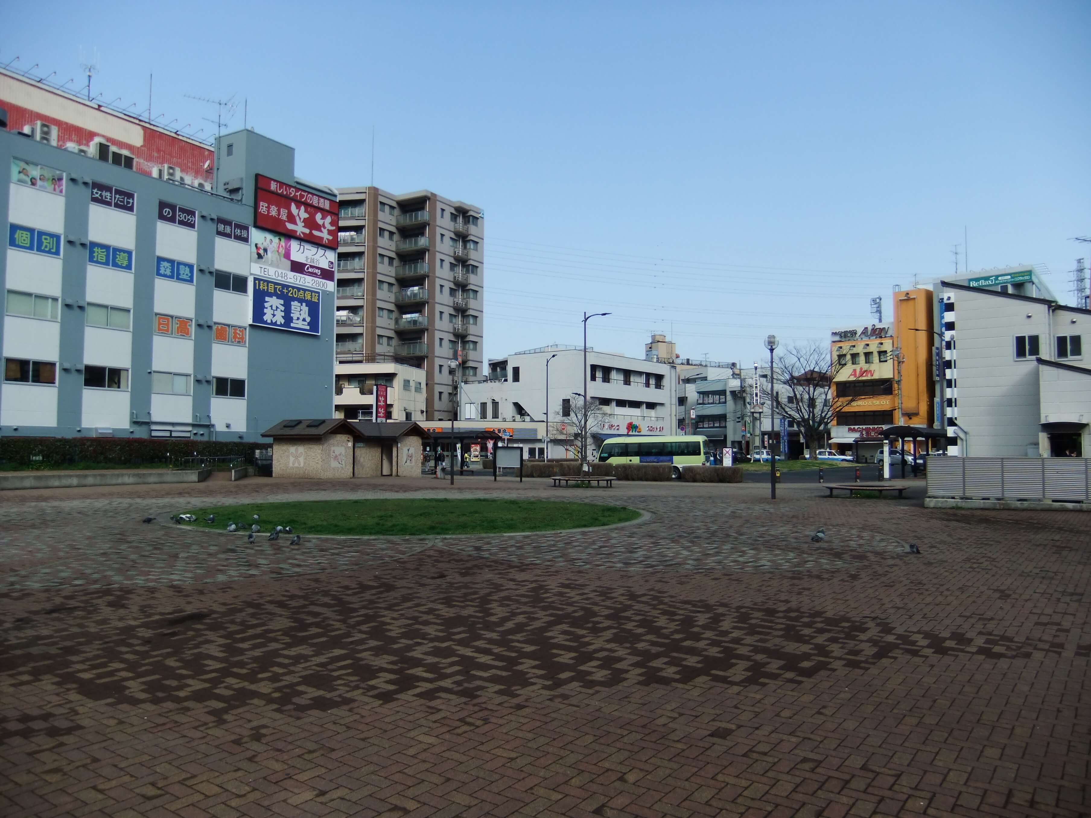 北越谷駅西口前の広場。右前方の建物は元「日野屋書店」です。