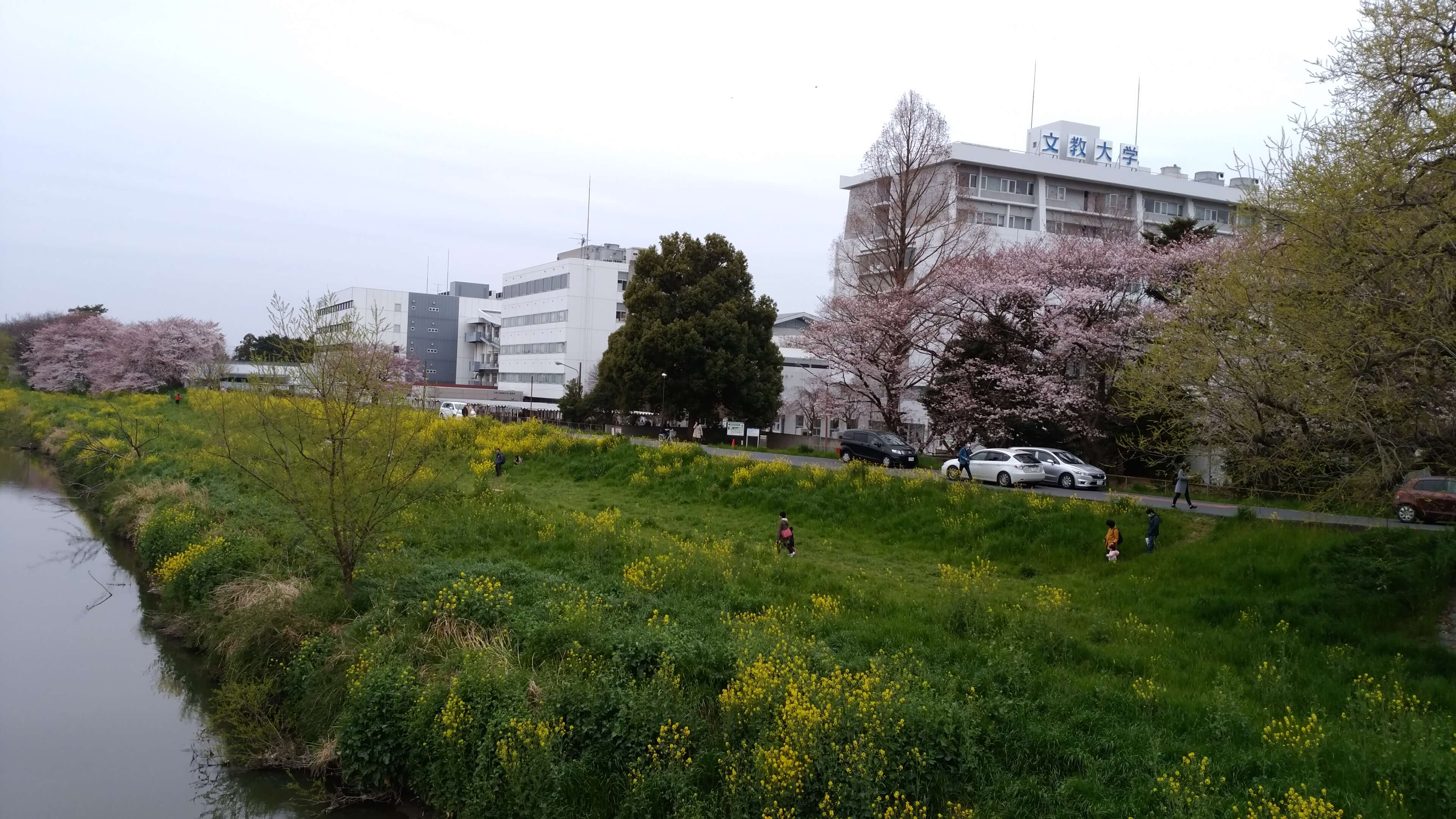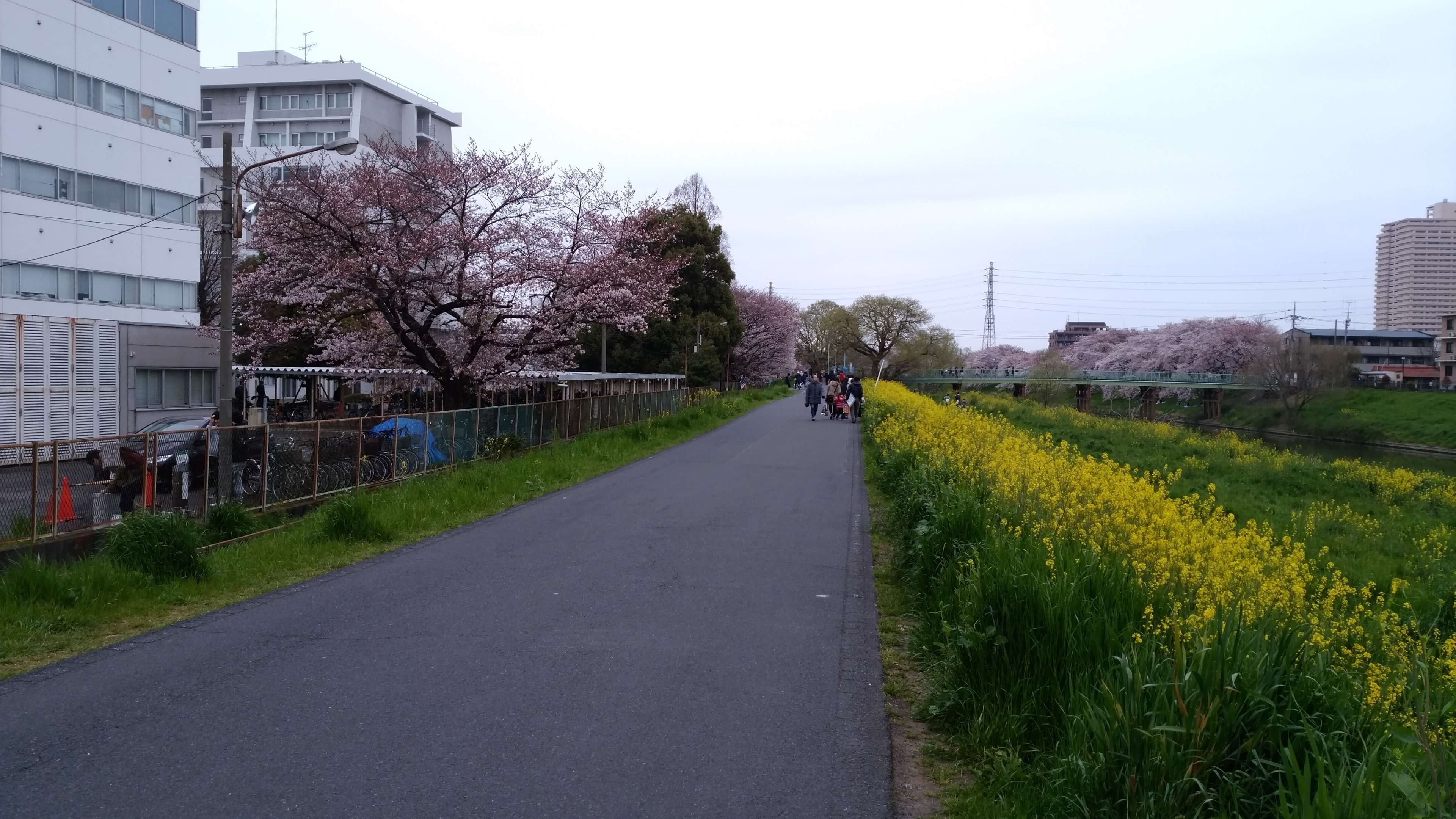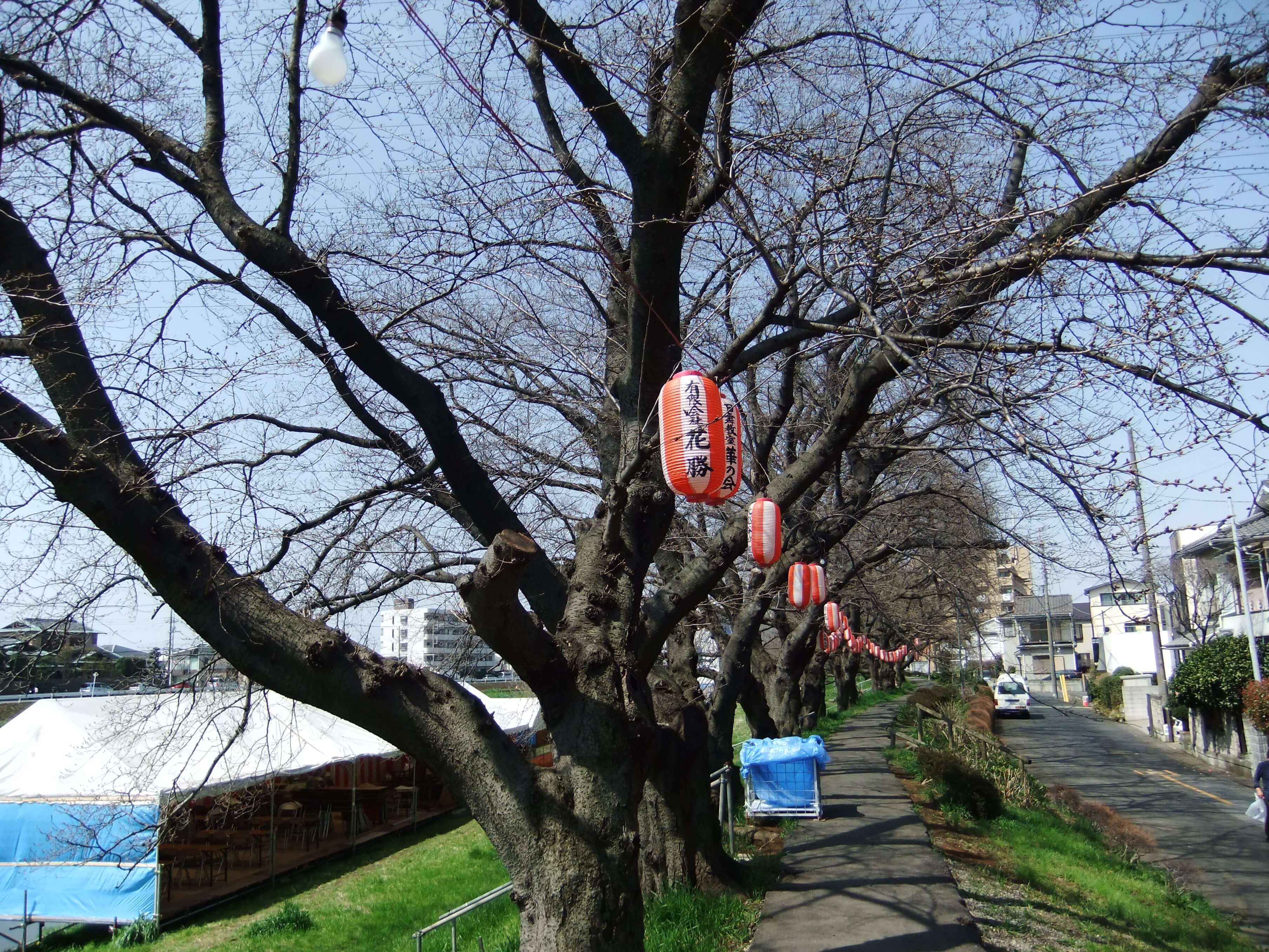 元荒川の土手沿いでは、花見の準備が着々と進められていました。
