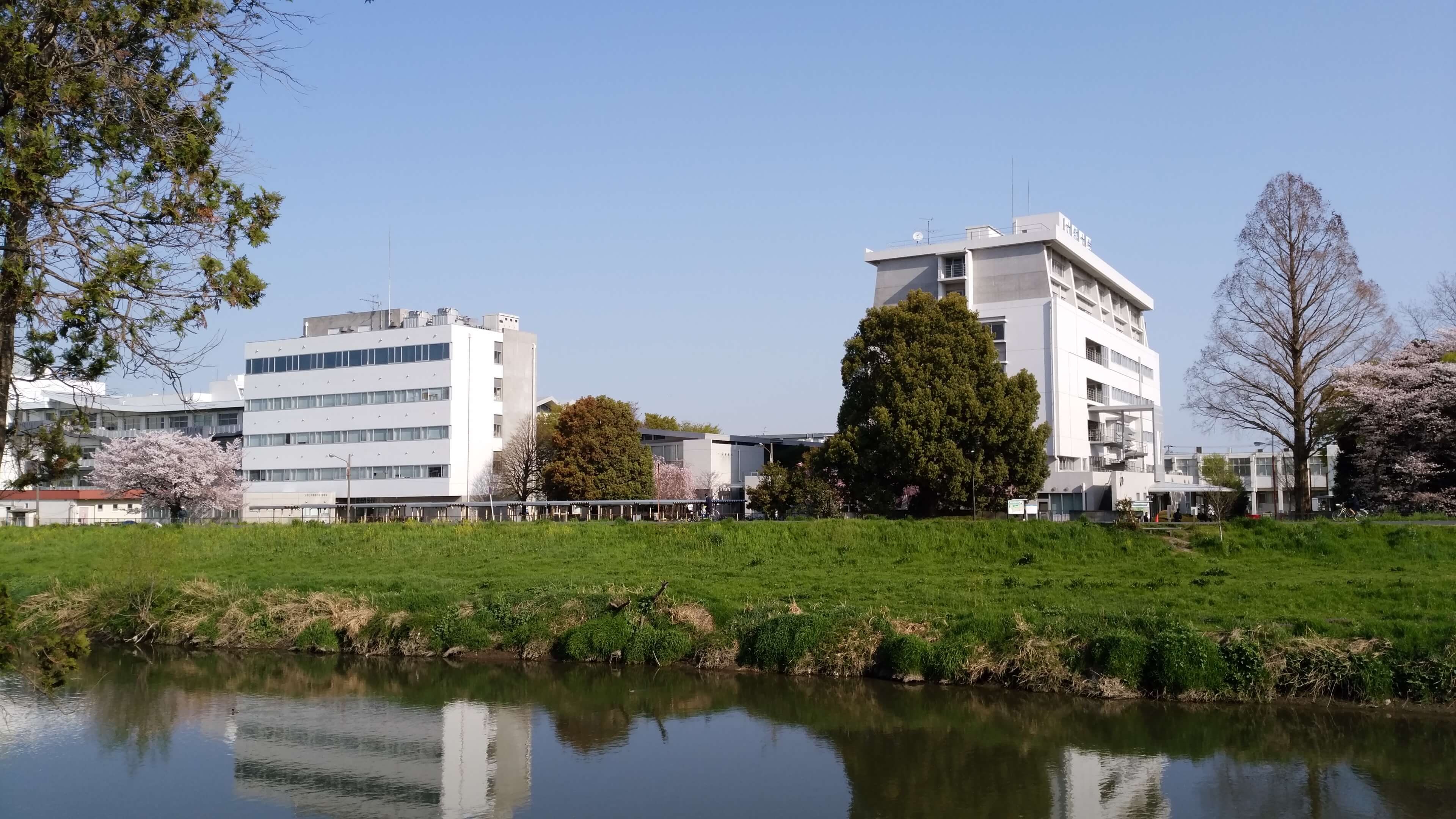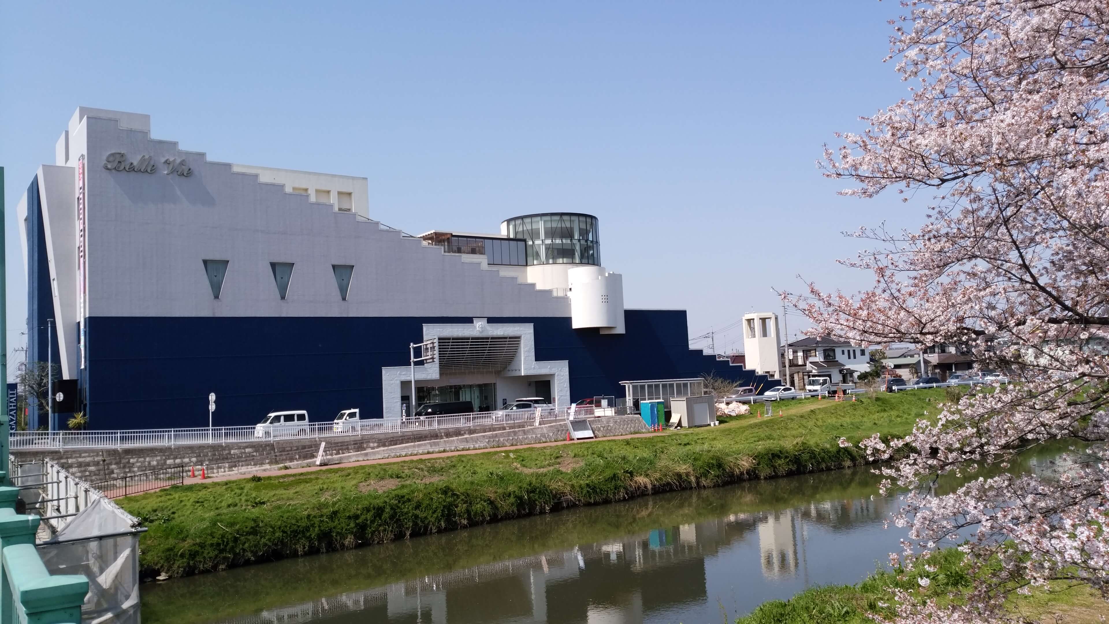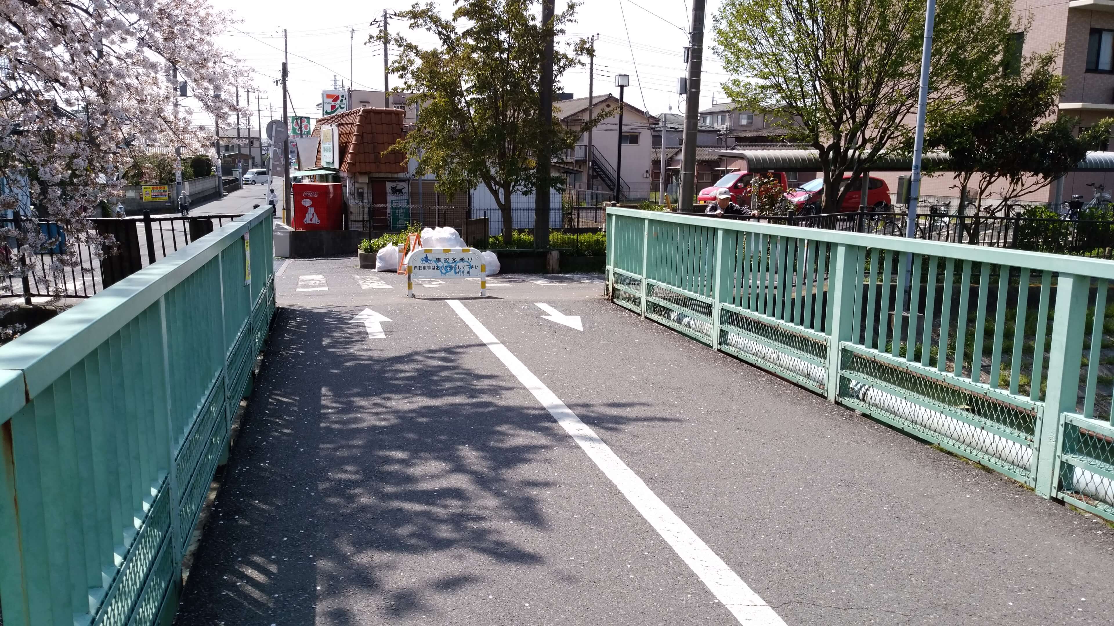 神明橋までやって来ました。「ギャザホール」と元荒川。