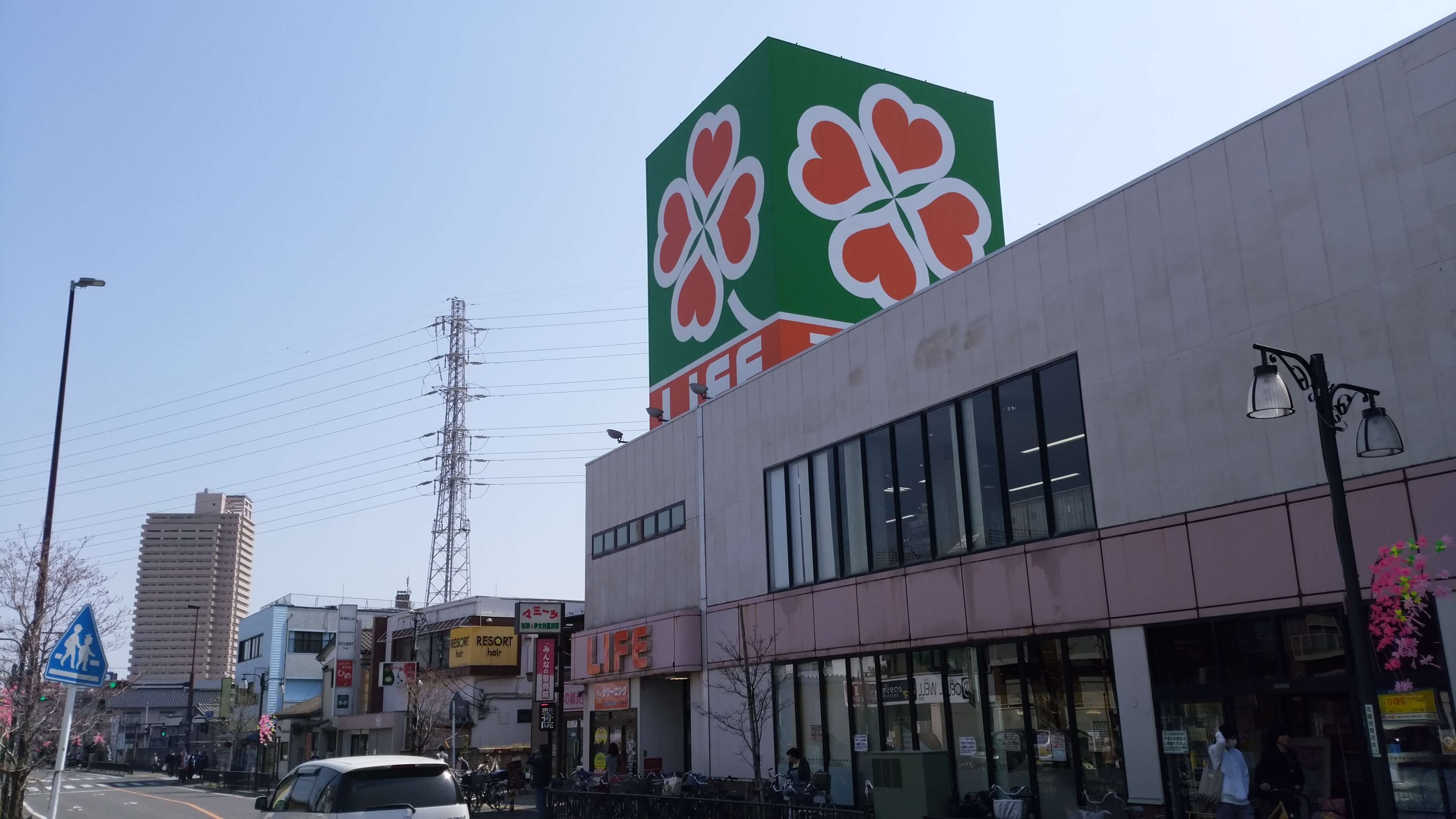 再び「ライフ」の前に戻って来ました。看板の色が鮮やかになっていました。(2016年をご参照ください)