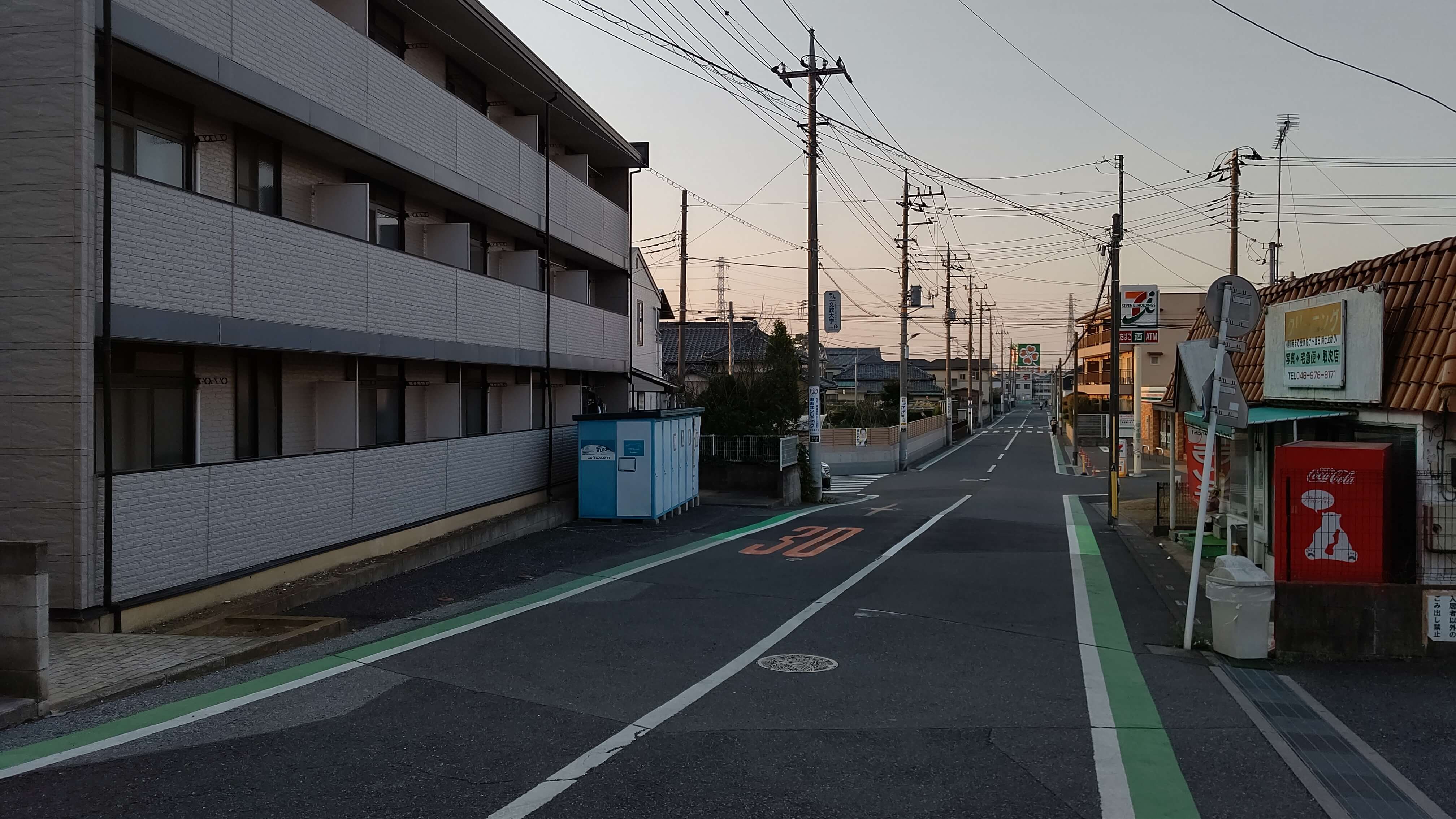 出津橋から「ライフ」方面を見たところ。夜明け直後は、静まり返っていました。
