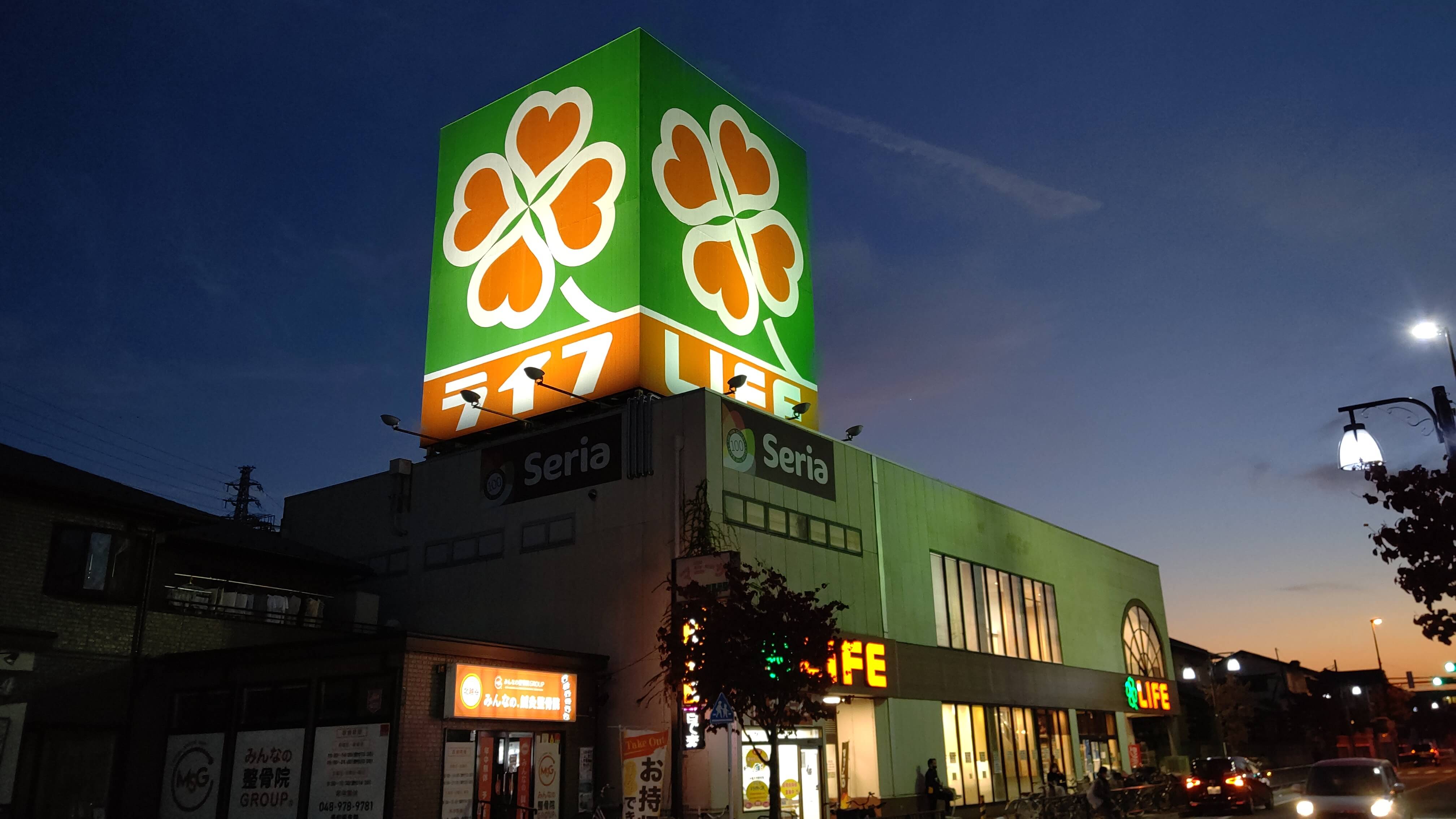 夕方、「ライフ」の前で。この時間帯に買い物をされていた方もおられるでしょう。