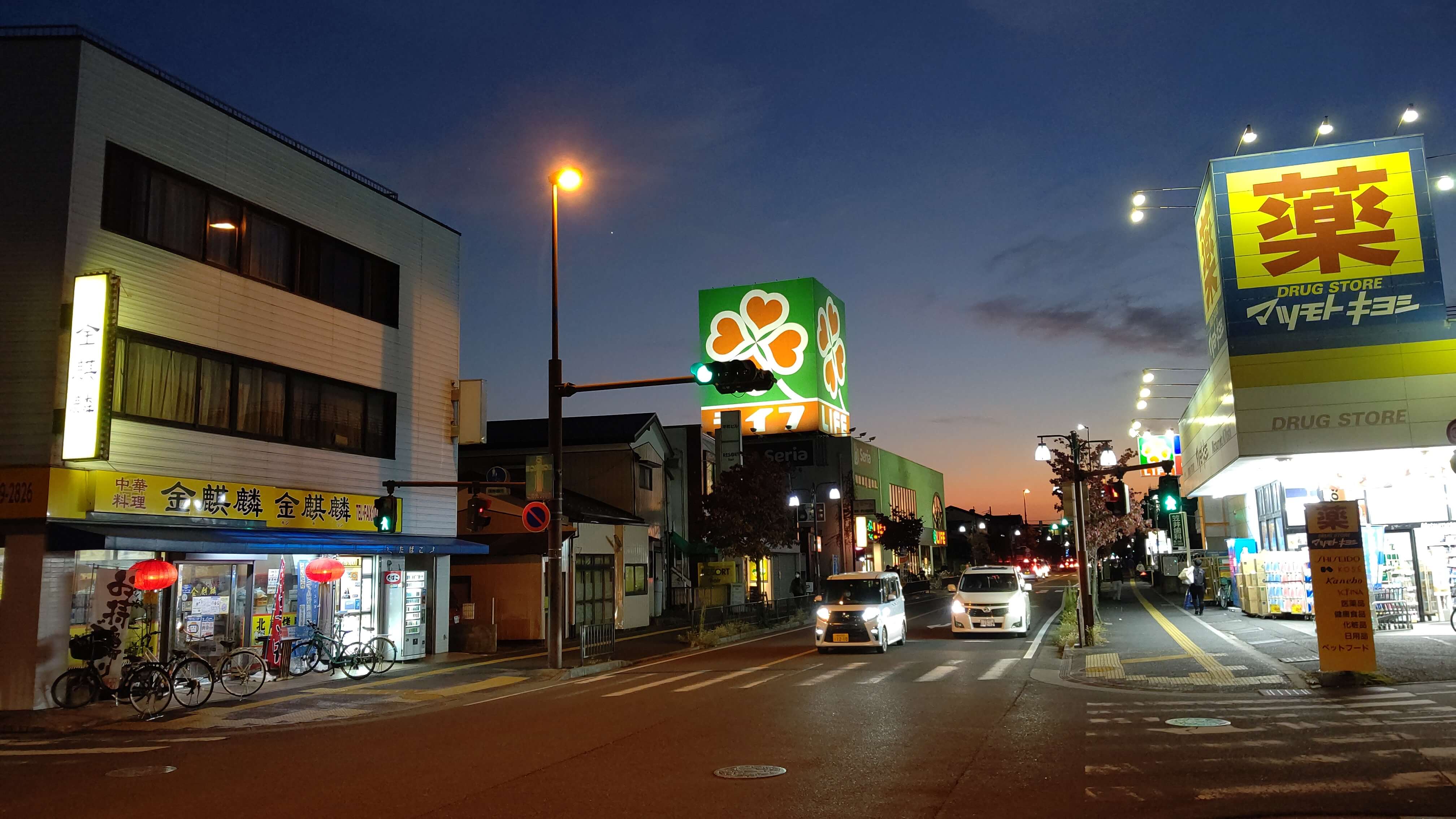 「マツキヨ」近くの交差点にて。夕方のキタコシの雰囲気、思い出される方もおられるのでは?