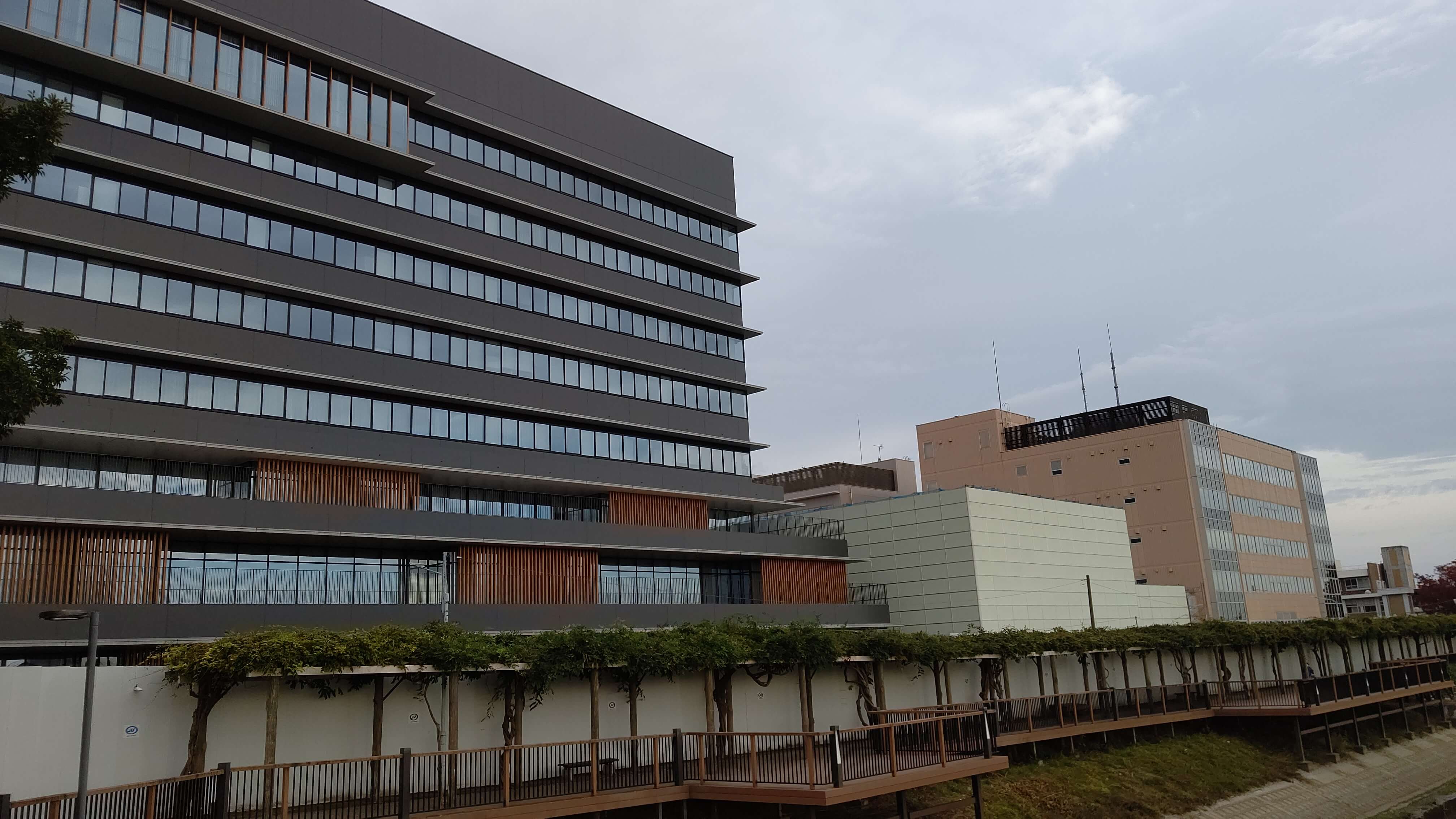 翌日の朝は、雲に覆われていました。これは、越谷市役所の新庁舎です。
