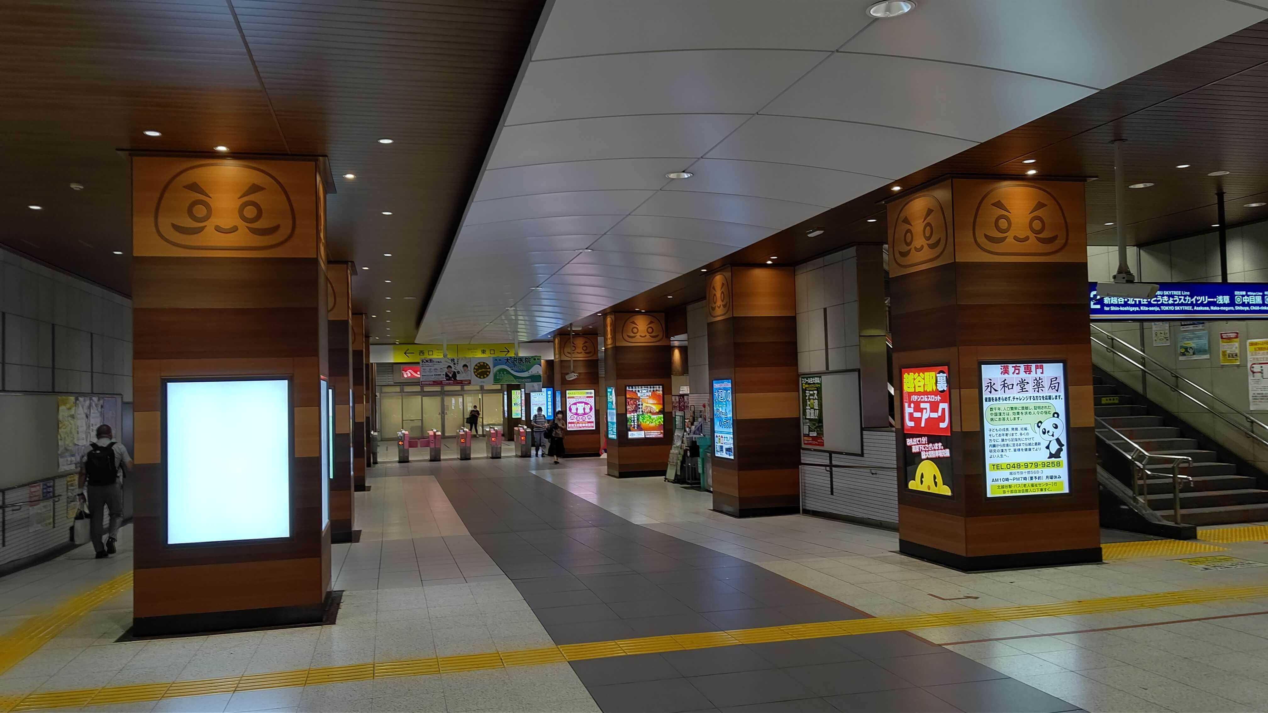 内装がガラリと変わった北越谷駅の構内。ちなみに、ダルマは越谷が一大産地なのだとか。知りませんでした。