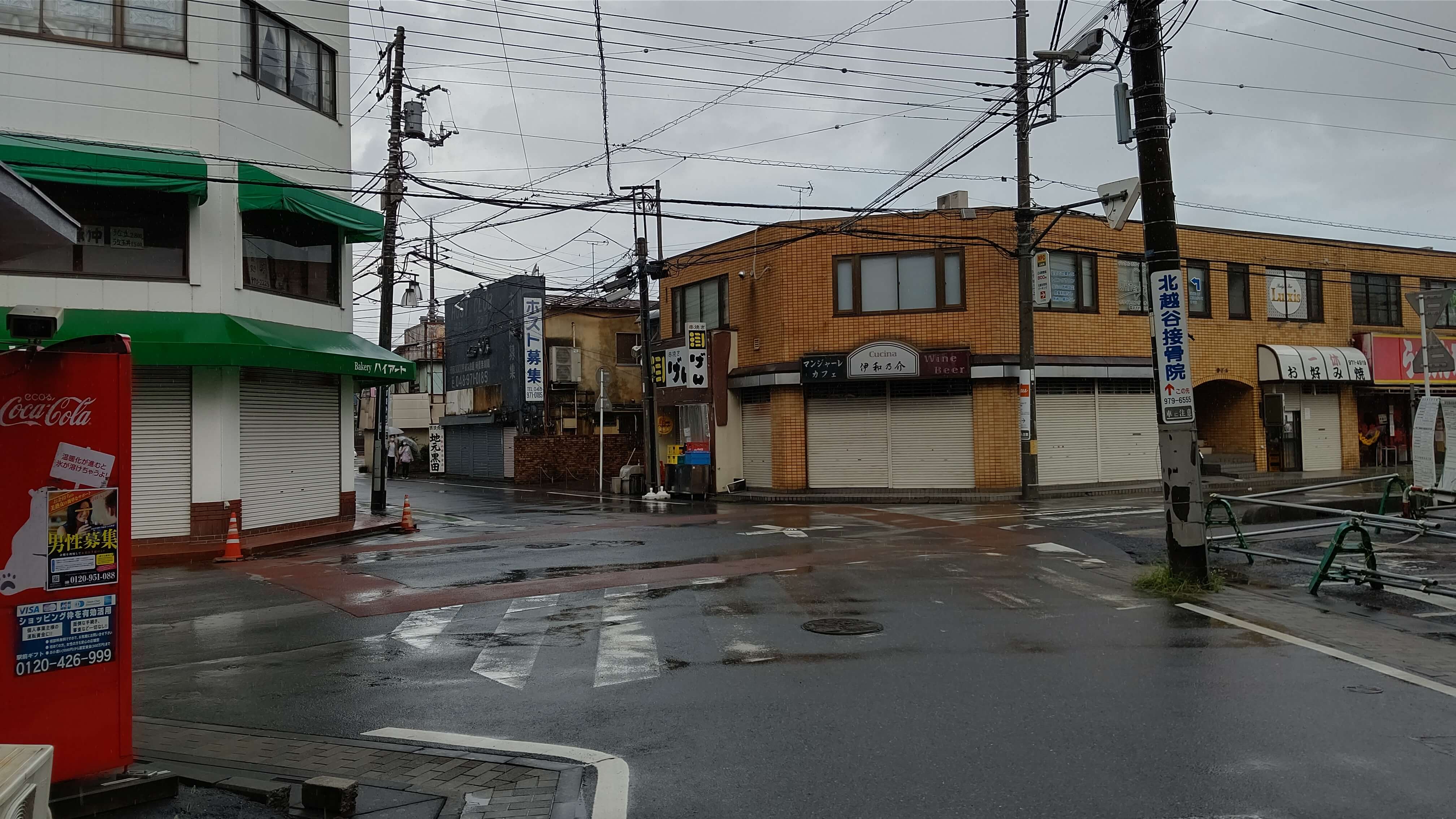 西口の様子。この日は、台風の影響で風雨が強い朝となりました。