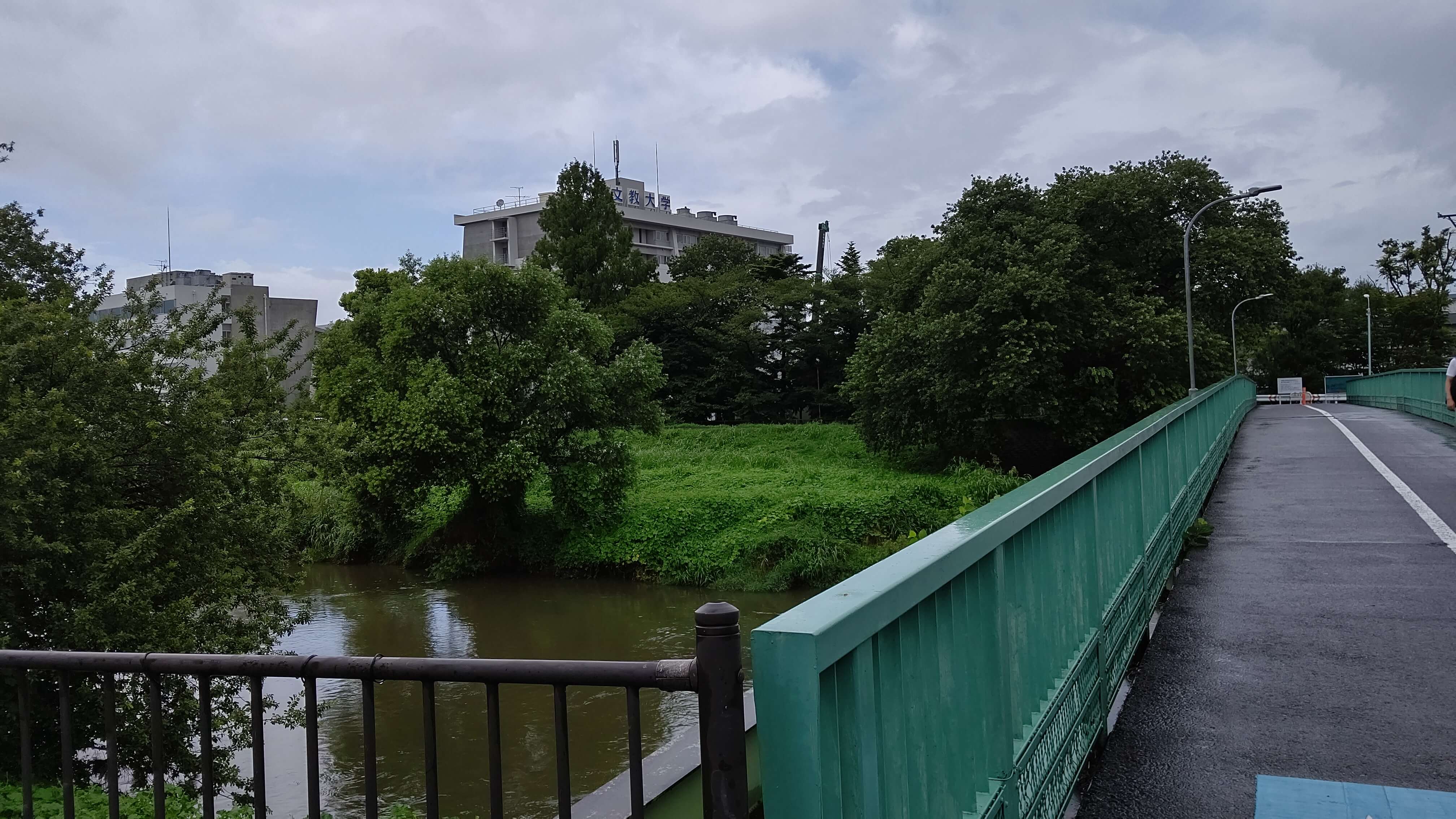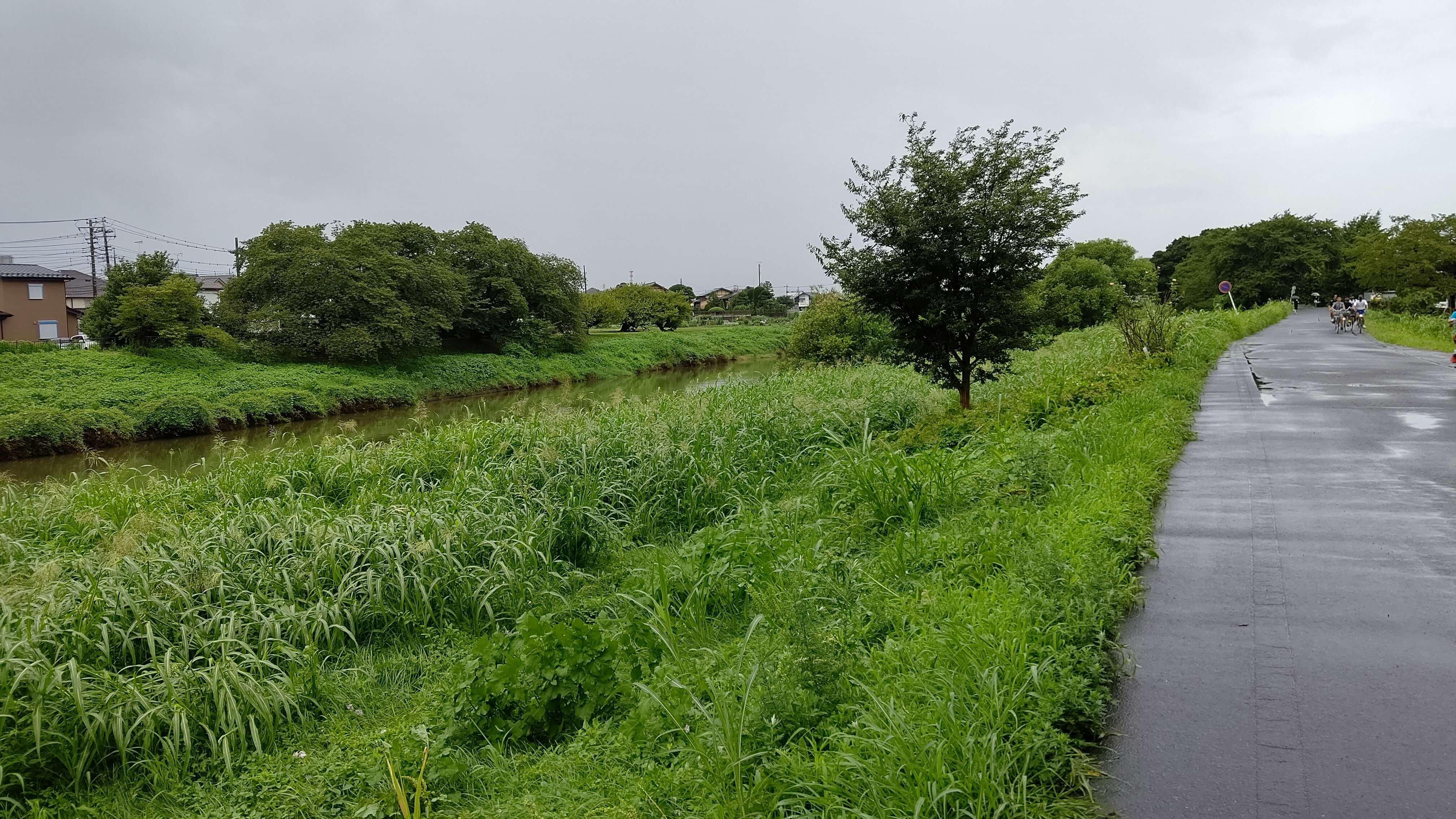 酷暑の影響か、大学前の土手は草が大きく伸びていました。