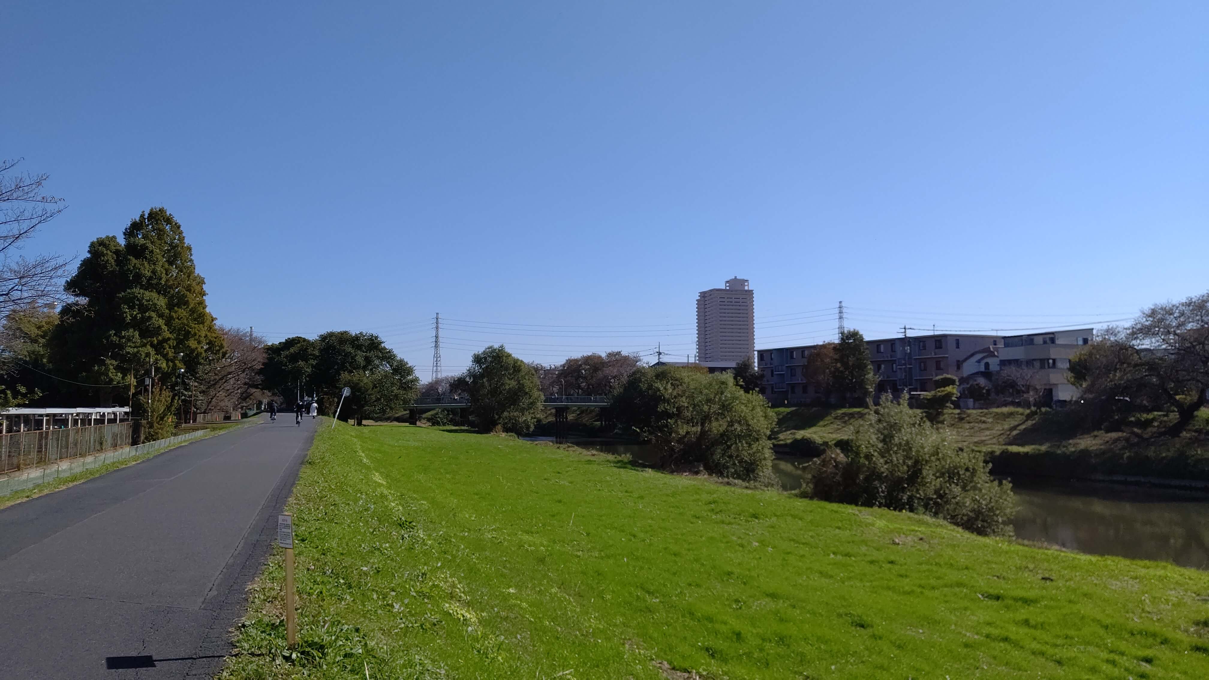 土手は、きれいに草が刈られていました。本来ならば、ここに学園祭来校者の自転車がびっしりと並んでいたことでしょう。