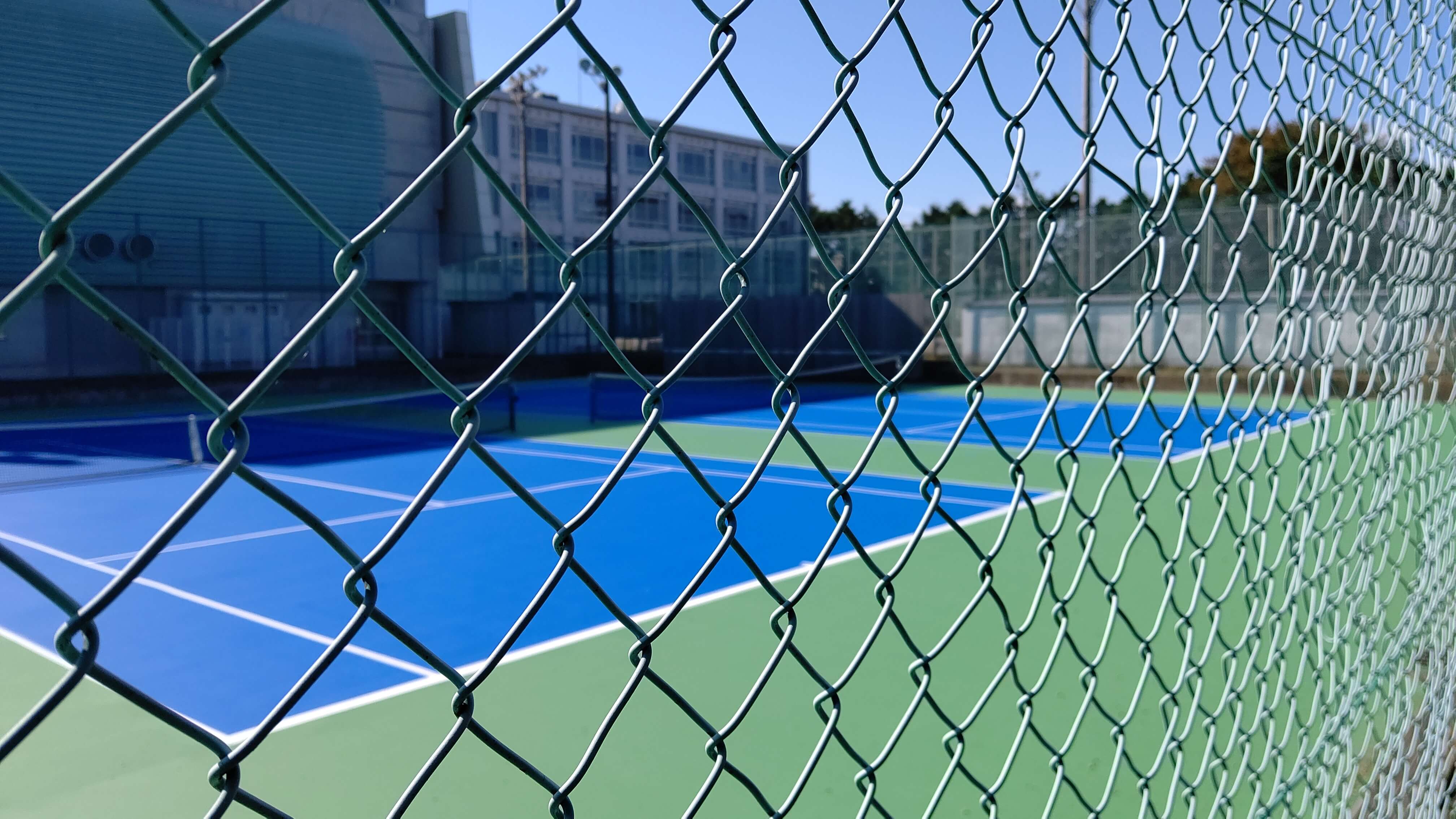 校舎裏側のテニスコート。日光に映えて、色鮮やかでした。