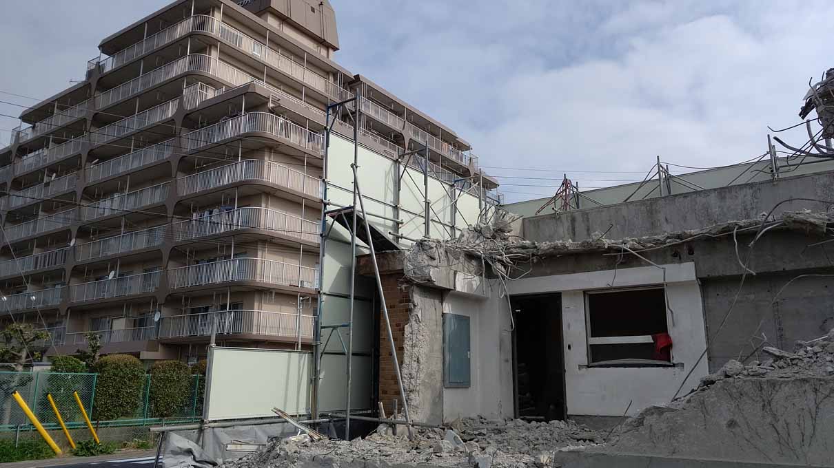 解体が進んでいた「石井コーポ」。写真は管理人室の辺り。