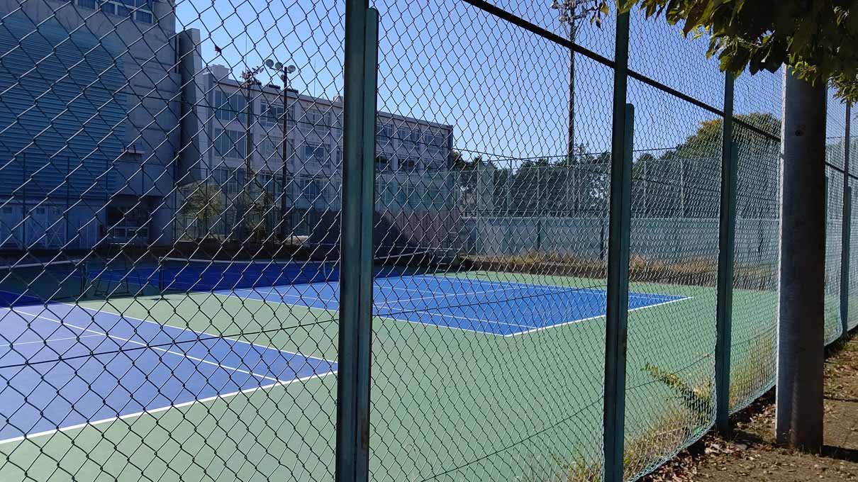 テニスコートの様子。早く大勢の学生さんの声が響くといいですね。
